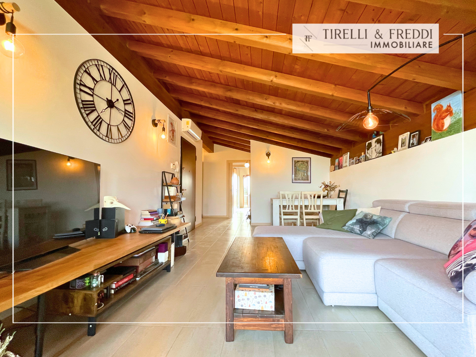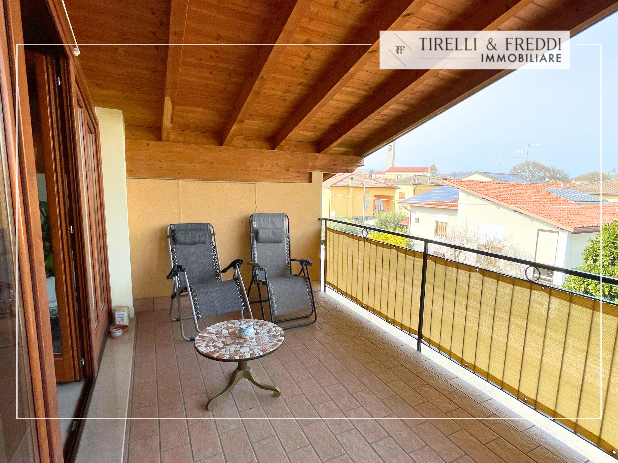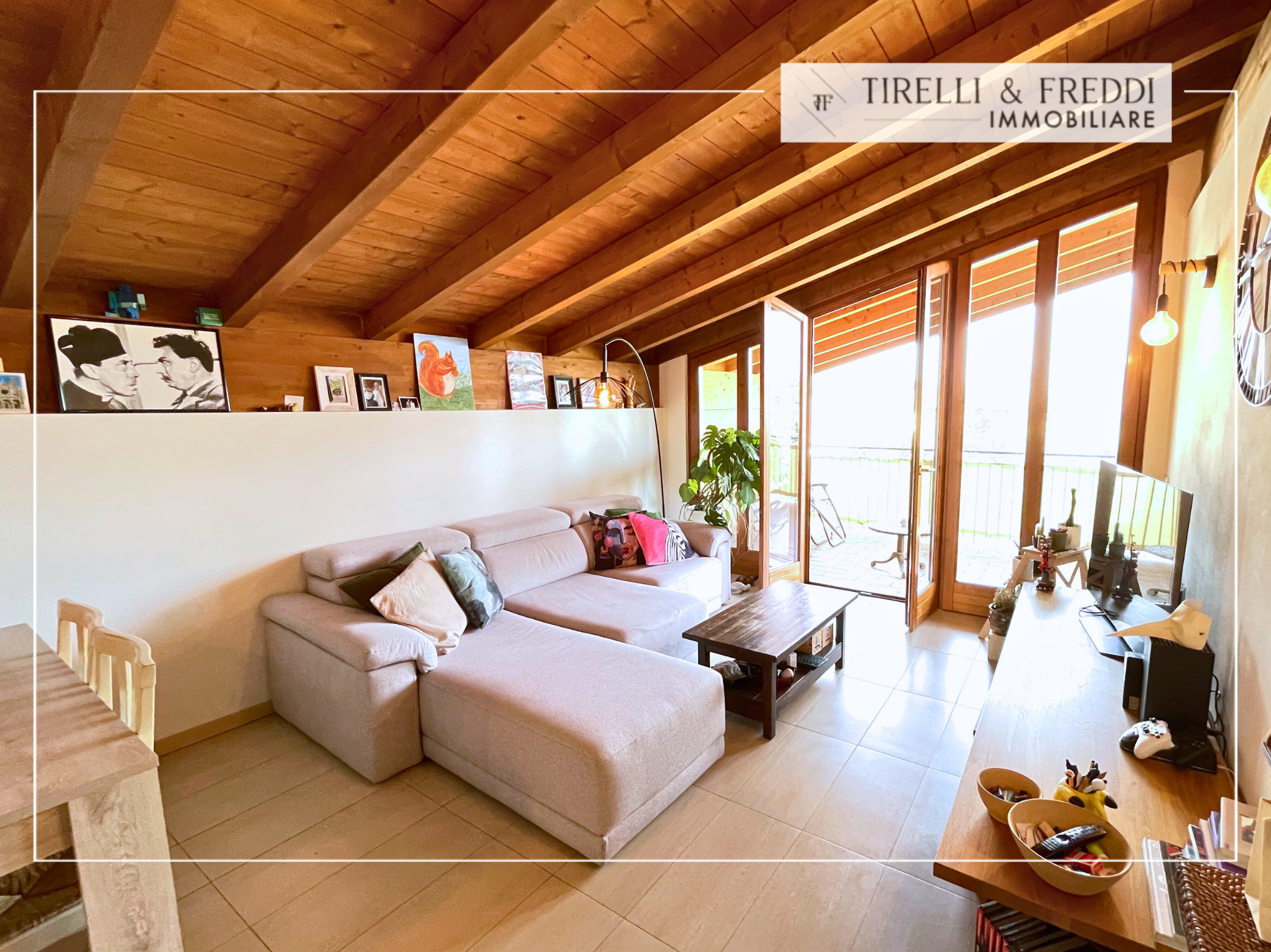 NOSTRA ESCLUSIVA: Cazzago San Martino – Calino – In un piccolo contesto di sole 10 unità abitative, proponiamo bellissimo appartamento trilocale al secondo ed ultimo piano! Di recente costruzione, riscaldamento a pavimento e cappotto termico, la mansarda si presenta molto luminosa con spazi comodi e ben gestiti. Il soggiorno, con angolo salotto e zona pranzo, si affaccia sulla grande loggia tramite una parete tutta vetrata. Dalla loggia godiamo di un bellissimo panorama sulle colline circostanti, molto spaziosa può ospitare sia una zona pranzo che una zona living esterna. La cucina rimane parzialmente separata dalla zona giorno, ma con accesso diretto. Nella zona notte troviamo due comode camere da letto, una con uscita su una seconda loggia e bagno con doccia finestrato tramite un velux a soffitto. Tutto l’appartamento è impreziosito da travi in legno naturale a vista. Completa la soluzione un garage singolo al piano interrato molto spazioso in modo da poter ospitare oltre all’auto anche moto e biciclette.