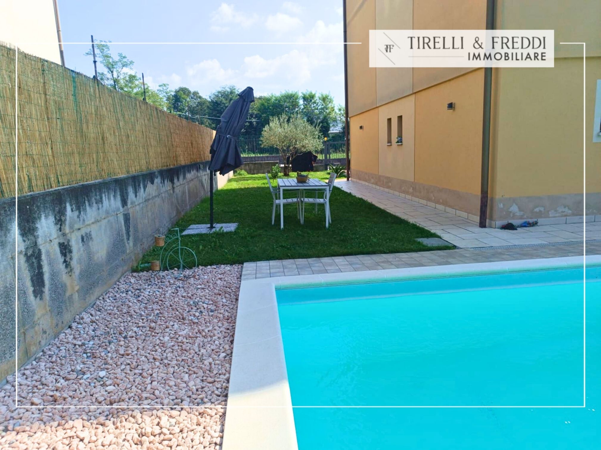 Doppio ingresso, sul fronte sia carraio sia pedonale, sul retro solo pedonale, totalmente indipendente… Al piano terra entrando ci accoglie un atrio che ci accompagna in una stanza multiuso molto accogliente che ha accesso direttamente sul lato piscina, alla lavanderia e allo spazioso box auto (anch’esso fuori terra). Salendo troviamo un luminoso soggiorno con cucina separata abitabile, un servizio al piano e un comodo ripostiglio; sia dal soggiorno, sia dalla cucina vi è accesso a dei balconi; al piano primo tre spaziose camere da letto, un bagno e accesso ad un solaio sfruttabile come ripostiglio! Una delle camere da letto gode dello sfogo su una piccola loggia coperta.